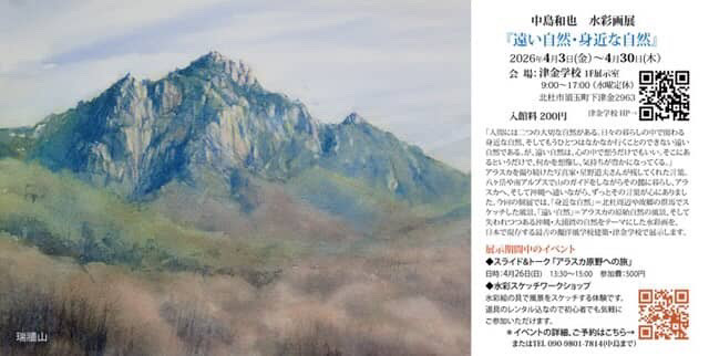 南アルプスの麓・北杜市武川町在住の水彩画家 中嶋和也さんの水彩画展が津金学校で開催されます。