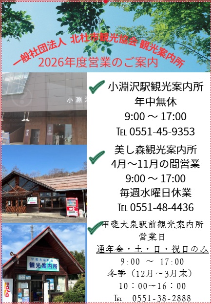 北杜市へ旅のご計画に、お立ち寄りに是非ご利用ください。